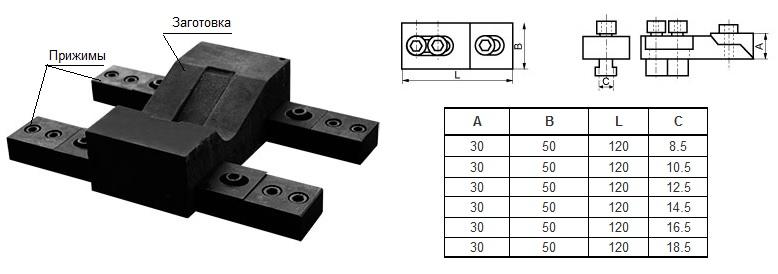 Прижим клиновой регулируемый 120х50х30х 8,5мм, паз  9,7мм М12 (3101)