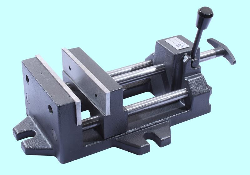TRIOD QH–100 – станочные тиски предназначены для установки и закрепления заготовки в удобном для обработки положении. Станочные тиски TRIOD устанавливаются на металлорежущих станках (фрезерные, сверлильные). QH–100 имеет: возможность поворота, крепкую и надежную конструкцию, удобную рукоятку при помощи которой осуществляется раздвижение губок, специальные отверстия для закрепления на различных станках или на верстаке, закаленные губки с насечкой для более надежного закрепления. Размер тисков определяется расхождением и шириной губок.