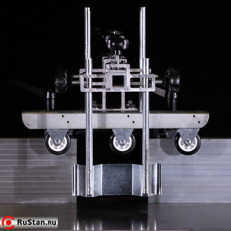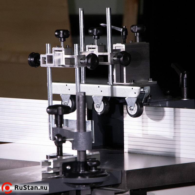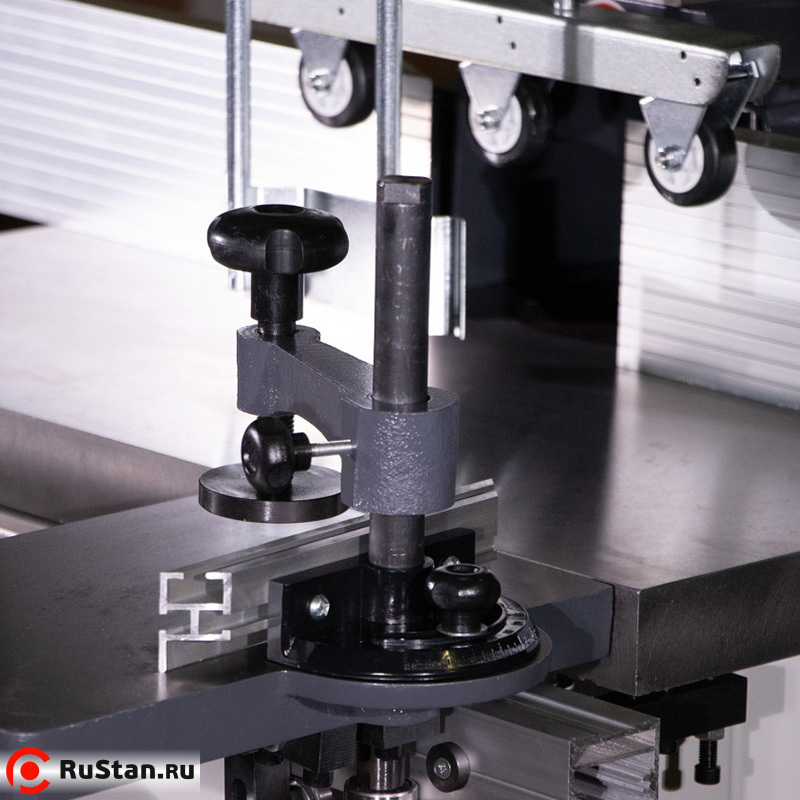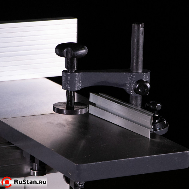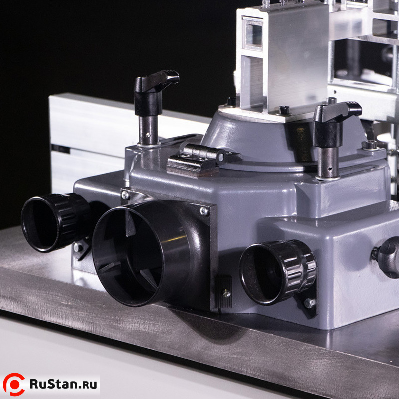 Устройство оснащено ограничителем толщины стружки. Механический вариатор позволяет добиться нужных оборотов и плавно изменять их. Это гарантирует высокое качество результата работы. Чугунная основа гарантирует устойчивость аппарата даже при высоких нагрузках. Как дополнительные устройства можно приобрести фасоне фрезы и пылесос для удаления стружки.