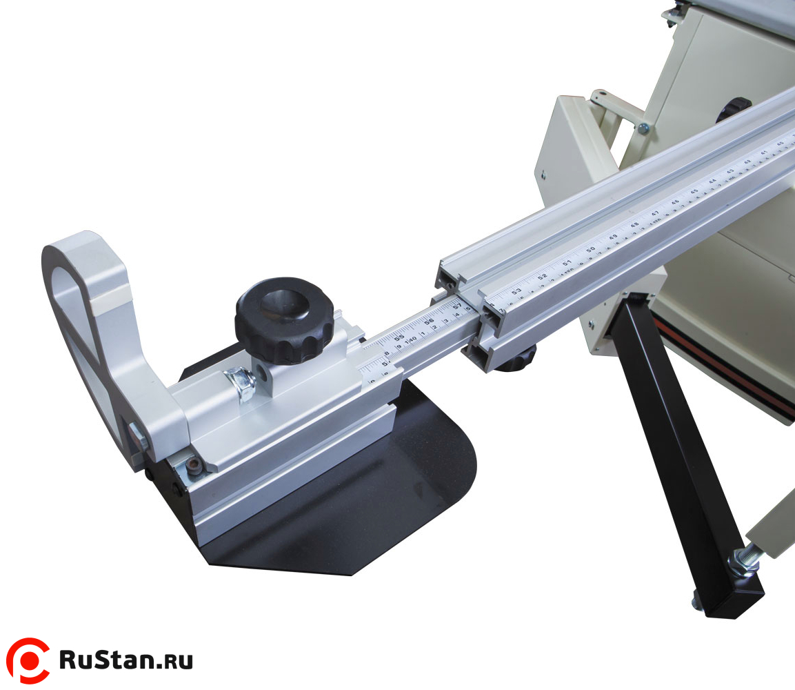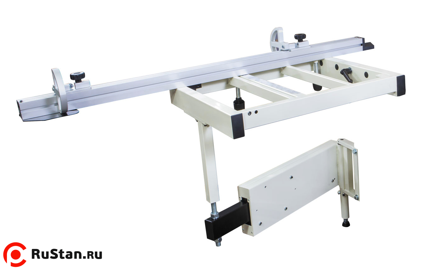 За дополнительную плату поставляется расширитель каретки, оборудованный телескопической опорой. В состав комплекта входит торцевой упор длиной 2500 мм с двумя концевыми ограничителями. Расширитель сделан из прочных профилей большого сечения, что допускает установку на него тяжелых заготовок, таких как толстые щиты клееные из дуба, бука и других твердых пород.