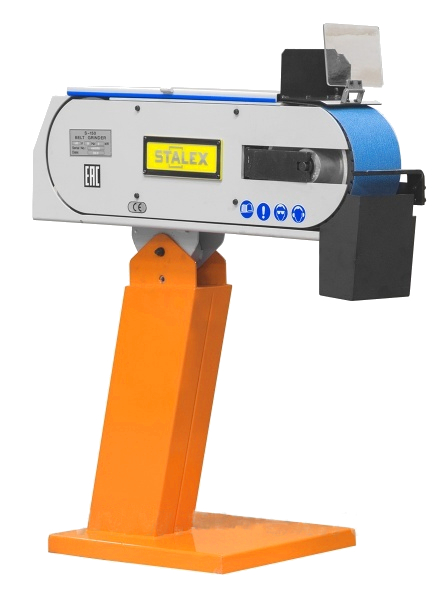 Это старшая модель в линейке, ширина шлифования (как и ширина абразивной ленты) - 150 мм. Максимальная длина шлифования у этого станка - 500 мм, длина ленты 200 мм. Чтобы устранить ее проскальзывание, ведущий и ведомый ролики имеют обрезиненную поверхность. Не смотря на то, что станок оснащен мощным электродвигателем на 2,8 кВт, подключить его можно к стандартной бытовой электросети напряжением 230 В. Привод обеспечивает постоянное движение ленты со скоростью 29 м/мин. Для удобства работы рама станка имеет приспособление для ее подъема до +30° и опускания до -15°.