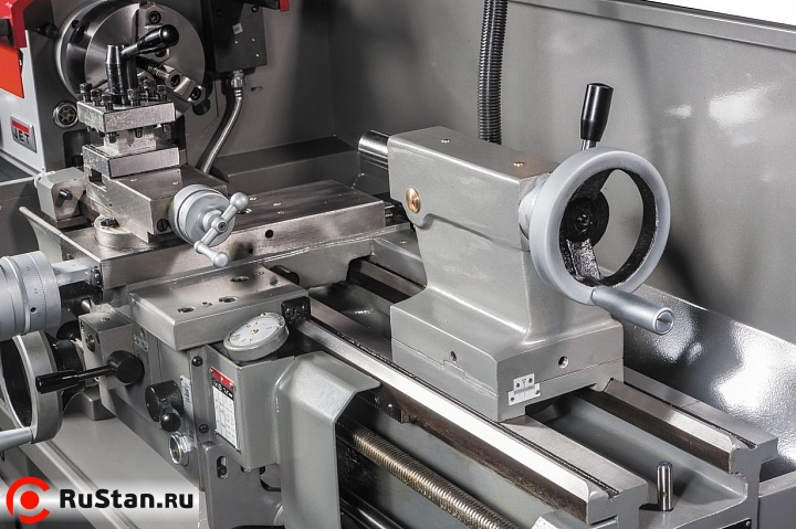 Следуя стандартам качества, компания JET оснащает свои токарные станки, включая и GHB-1330A, закаленными и тщательно отшлифованными направляющими станины, что повышает точность обработки и увеличивает срок службы оборудования. Шестерни передней бабки также закалены и отшлифованы. Их придется менять только лишь при переходе с нарезания метрической резьбы на дюймовую. С целью обеспечения непрерывного охлаждения, снижения уровня шума и увеличения ресурса механизм привода шпинделя помещен в масляную ванну. Станок оснащен механизмом автоматической подачи продольного и поперечного суппорта, а также регулируемой в поперечном направлении задней бабкой для обточки конических заготовок. Как и все станки этой линейки, GHB-1330A построен по двухвинтовой схеме: ходовой винт отвечает за резьбу, ходовой вал, отвечает за точение в автоматическом режиме. Также предусмотрен толчковый режим работы шпинделя для облегчения переключения режимов работы.