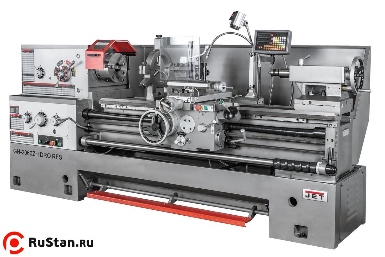 Станок JET GH-2060 ZH DRO RFS предназначен для токарной обточки заготовок из различных сортов стали, сплавов и цветных металлов. Диаметр заготовки при обточке над станиной составляет 500 мм, со снятым мостиком gap – 720 мм, диаметр обработки над суппортом – 310 мм. Расстояние между центрами составляет 1525 мм. GH-2060 ZH DRO RFS выпускается в строгом соответствии с протоколом DIN 8606, что гарантирует соблюдение всех норм и допускав на всех этапах сборки, а также дает право гарантийного обслуживания на территориях стран-участниц Таможенного союза. Станок установлен на массивную станину из высококачественного чугуна, ее направляющее подготавливаются к длительной эксплуатации по фирменной технологии производителя.