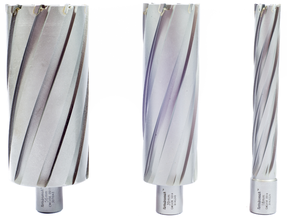 Кольцевые фрезы по металлу Rotabroach изготавливаются с напаянными твердосплавными пластинами из карбида вольфрама.
